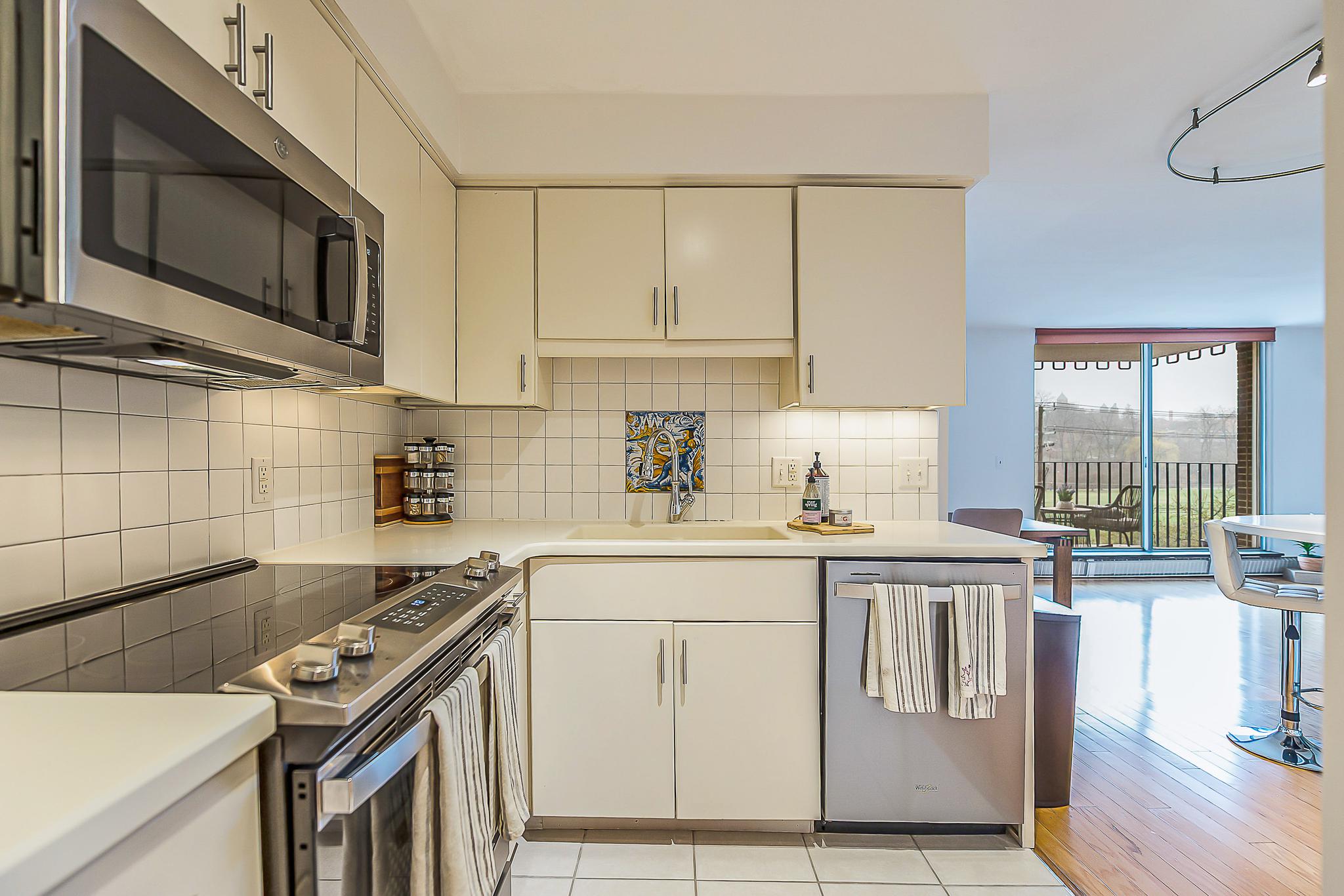 Living at Riverside Park Place comes with exceptional amenities. You will enjoy access to a meticulously maintained inground pool, a secure lobby with a mail room, elevators, a community gathering room with a full kitchen, a project workspace, and a private lower-level storage locker. Laundry facilities are conveniently located on every floor.
