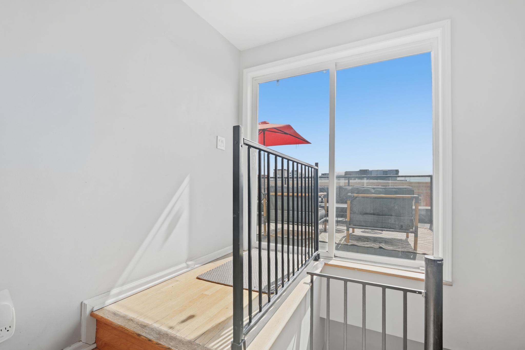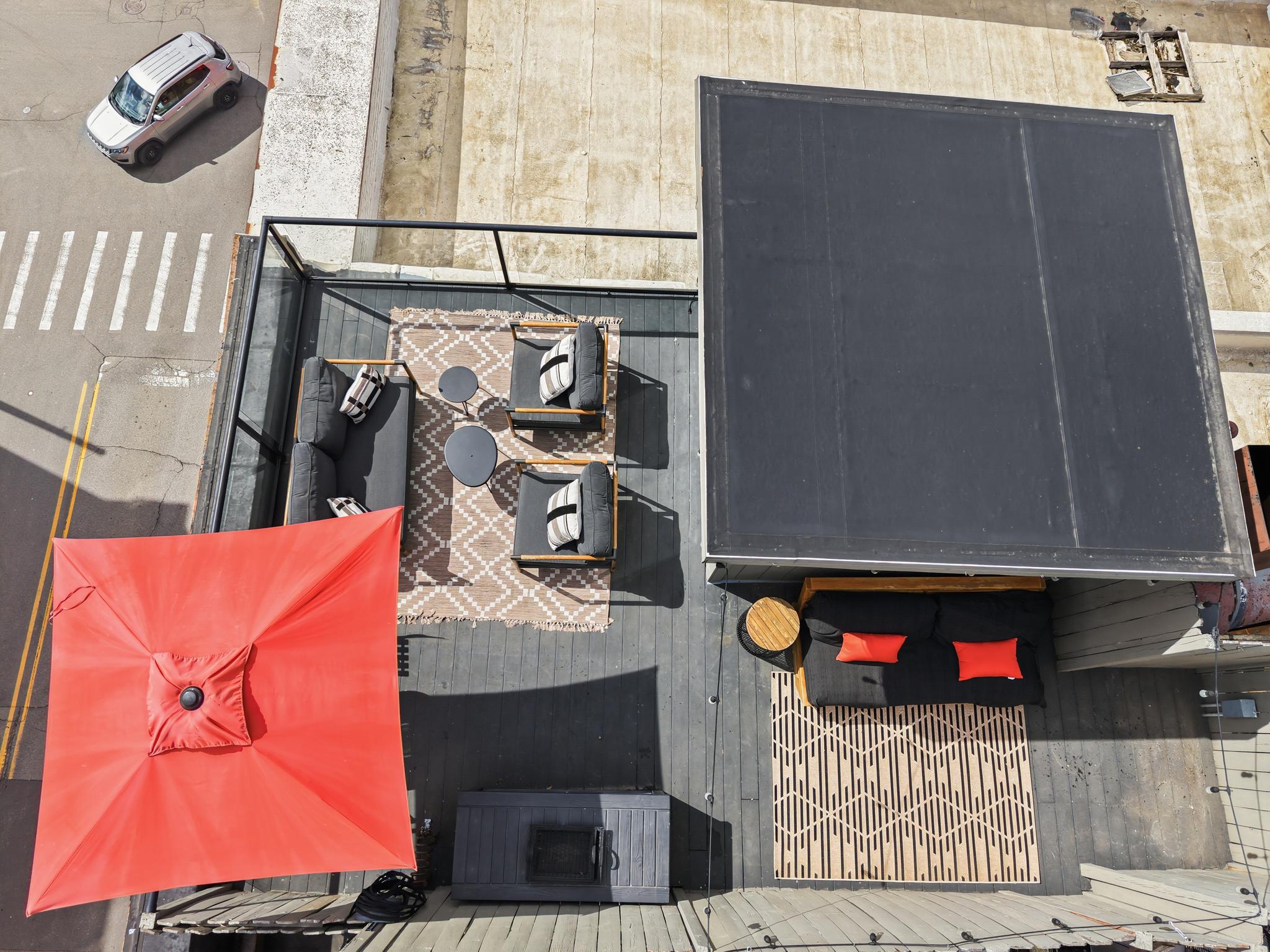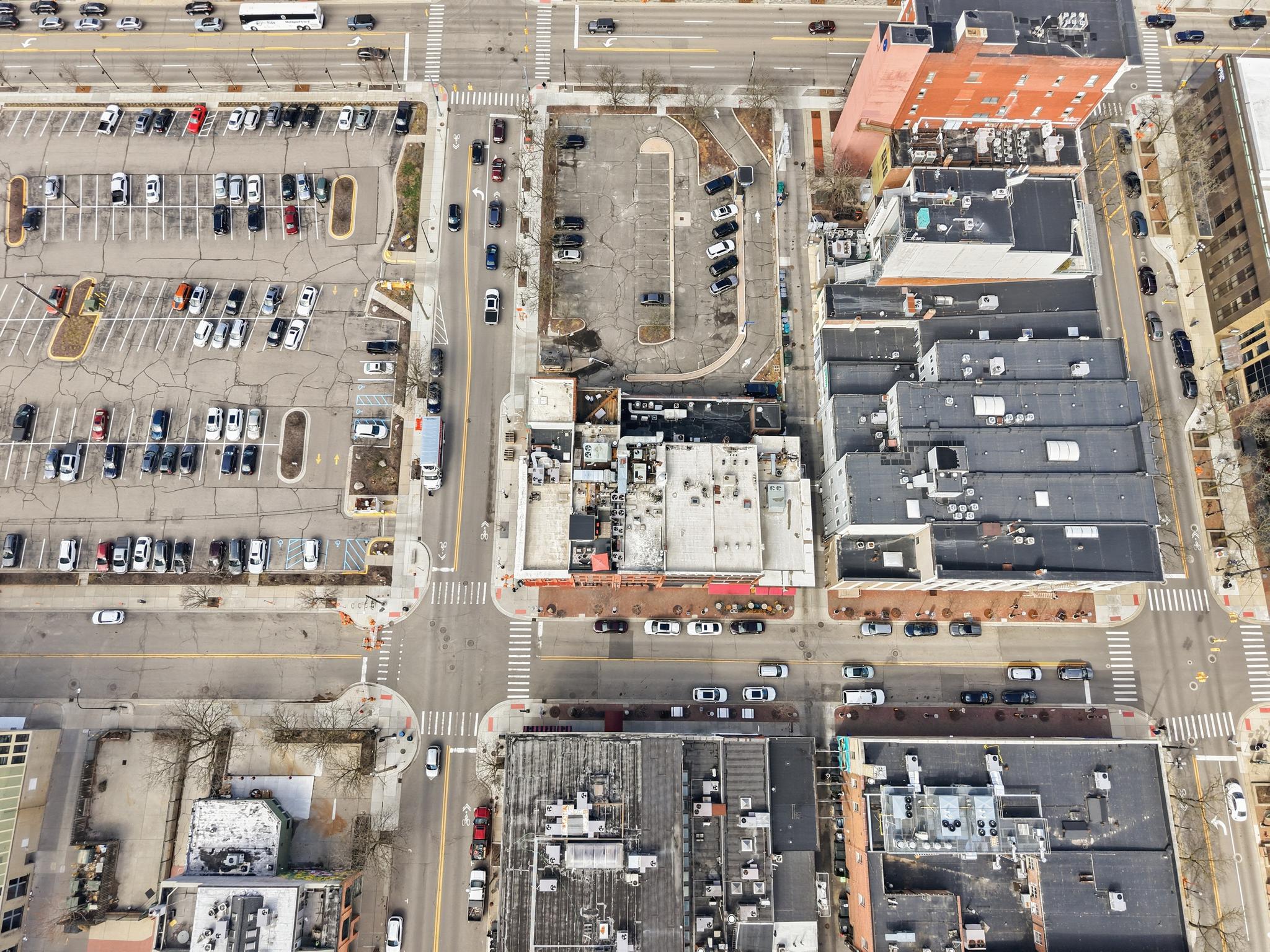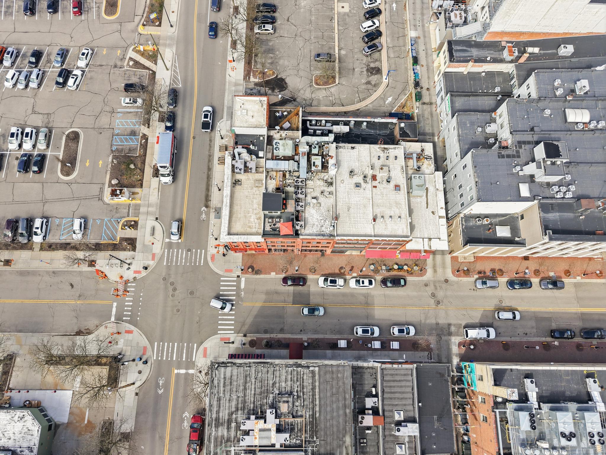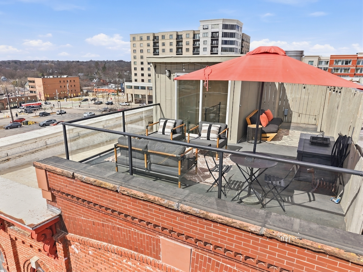 A spiral staircase leads to the show-stopping rooftop deck, where you’ll find ample space for entertaining or unwinding while overlooking the lively streets of Ann Arbor. On the lower level, the primary suite offers a peaceful retreat with a walk-in closet and a thoughtfully designed ensuite bath. A second bedroom, ideal for guests or a home office, and an additional half bath complete the space.