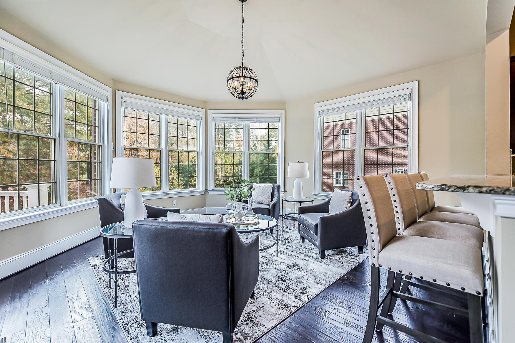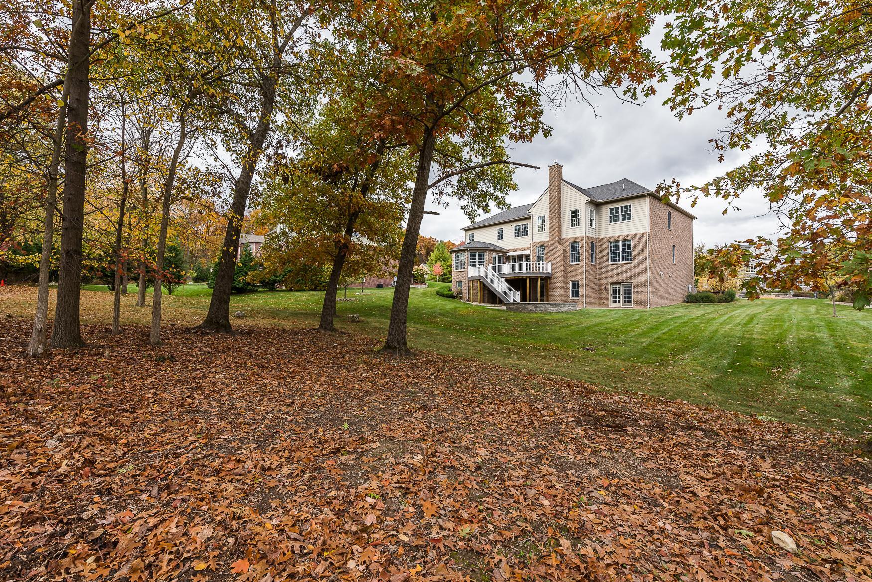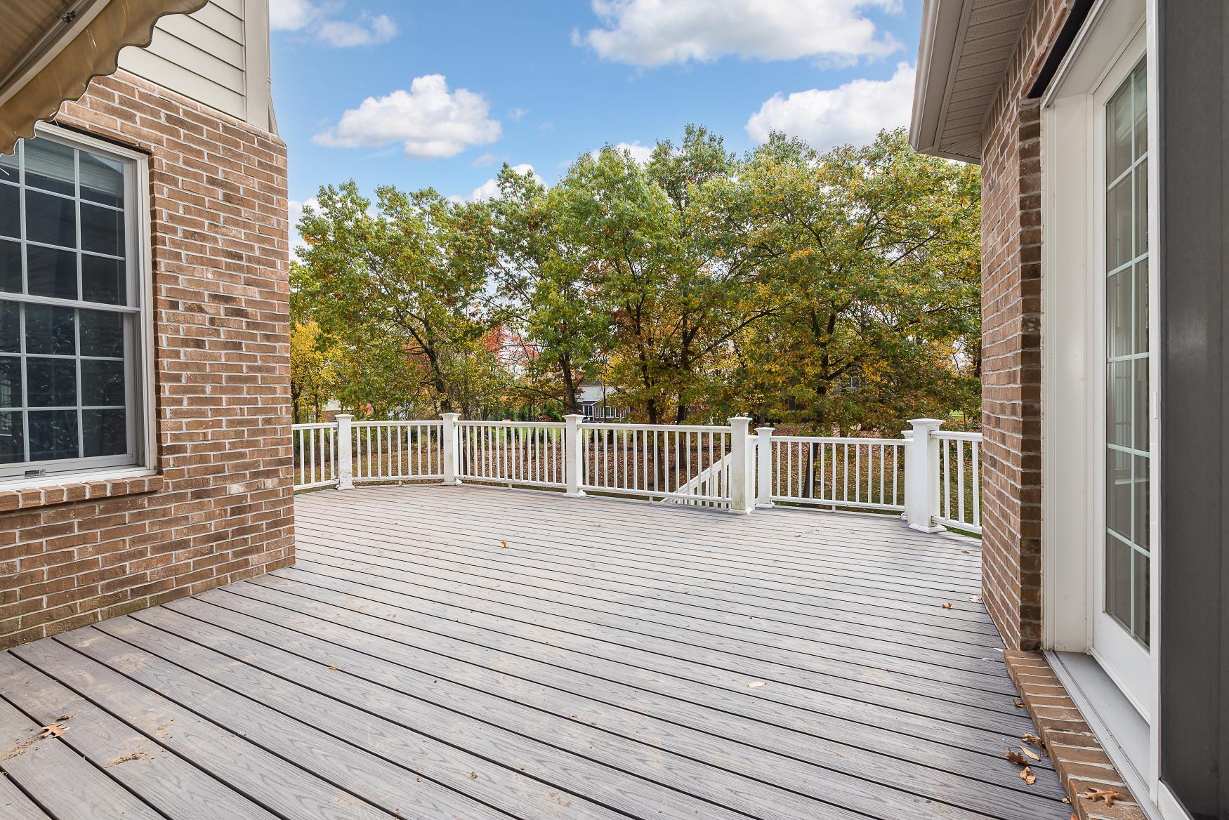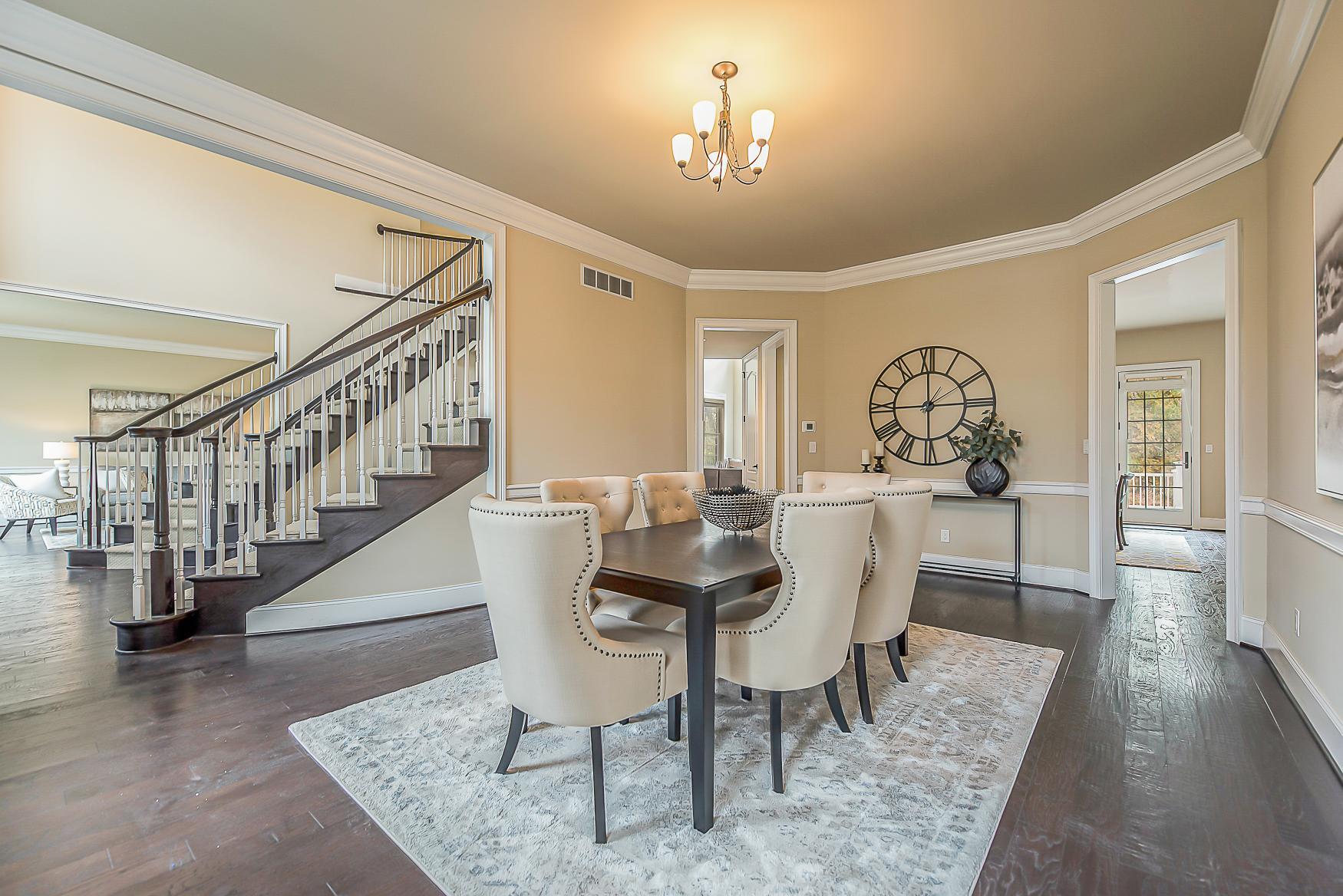Designed for the ultimate host, the gourmet kitchen is a chef's dream. It features a large center island, granite countertops, rich cherry cabinets, a full suite of stainless-steel appliances, and a walk-in pantry. The adjoining eating area opens directly onto a spacious composite deck, complete with an automatic overhead canopy for perfect outdoor dining. Steps away, the sunroom invites relaxation with its vaulted ceilings and sun kissed glow. Host memorable dinners in the formal dining room, large enough for grand gatherings and elegantly appointed with crown and chair rail molding. A dedicated study with floor-to-ceiling built-in bookcases offers a quiet retreat for work or reading. Two half baths complete the expansive main level.