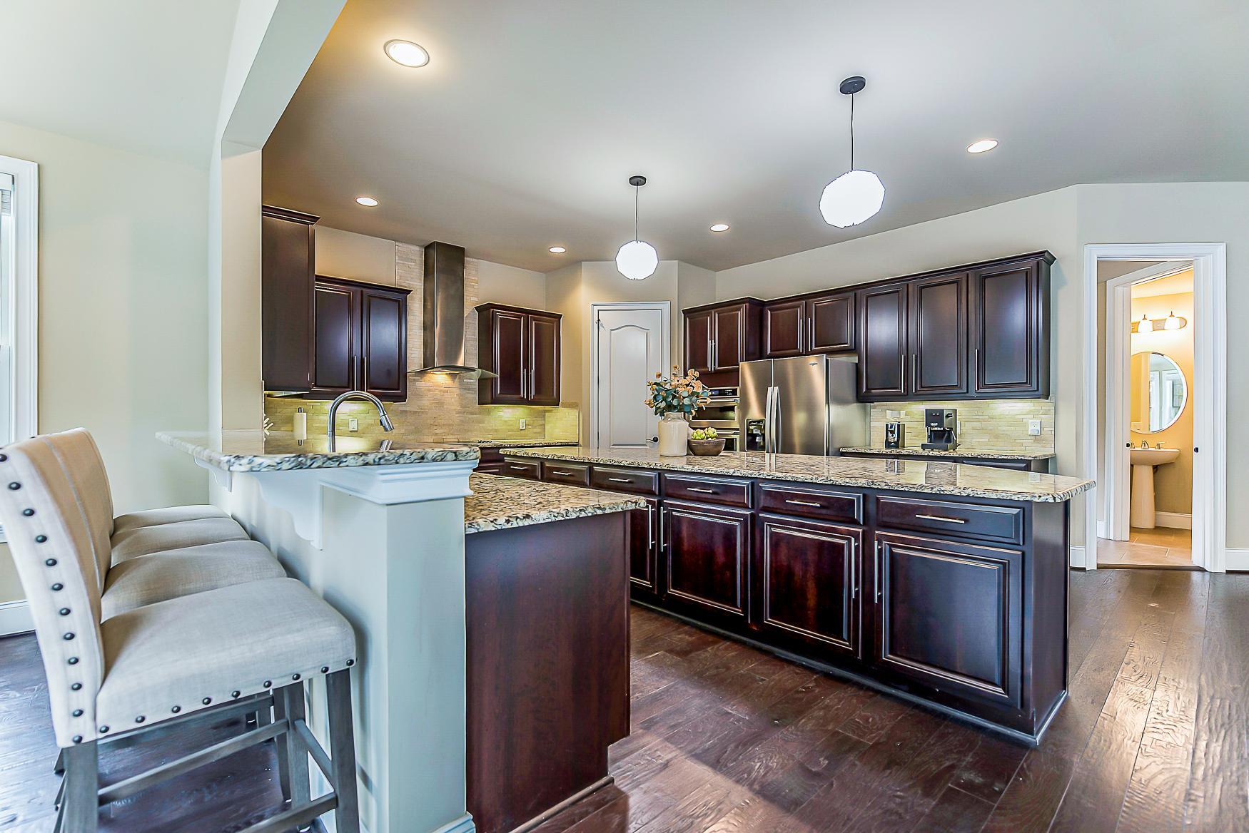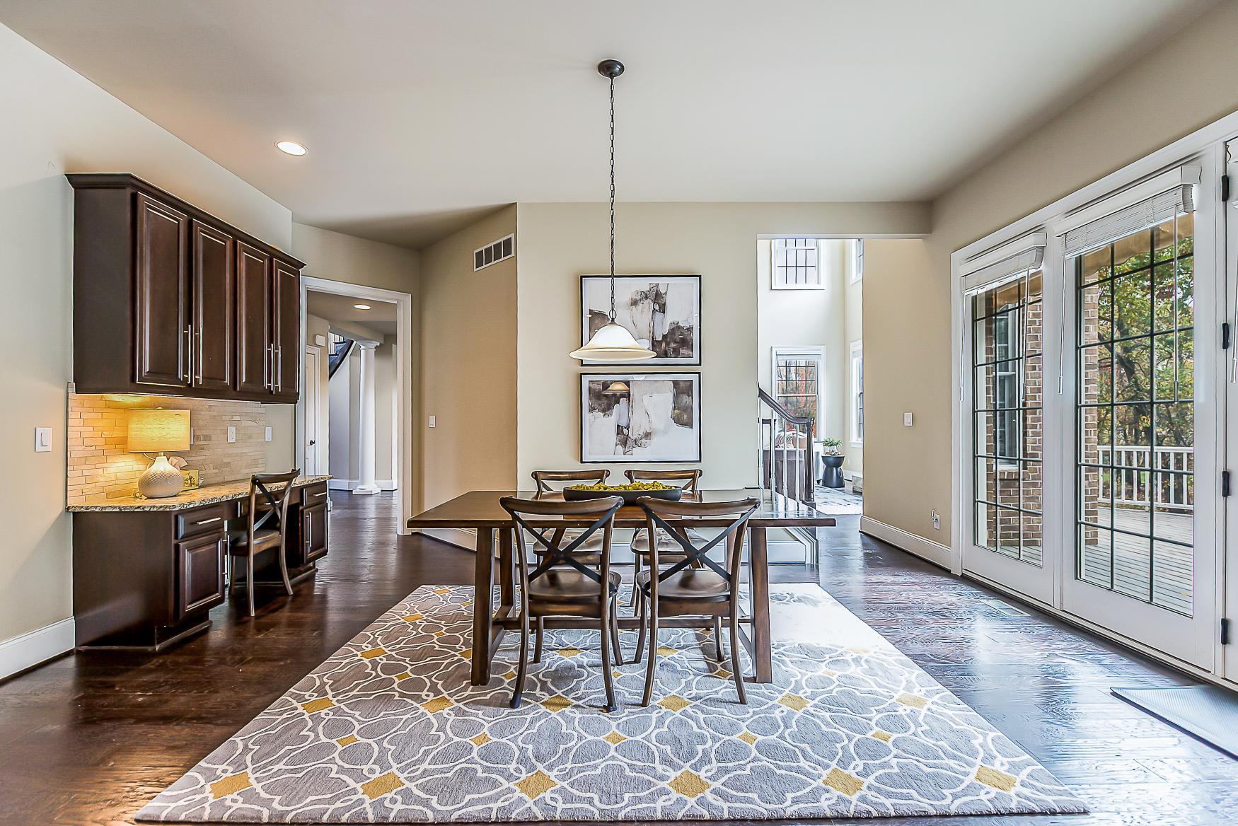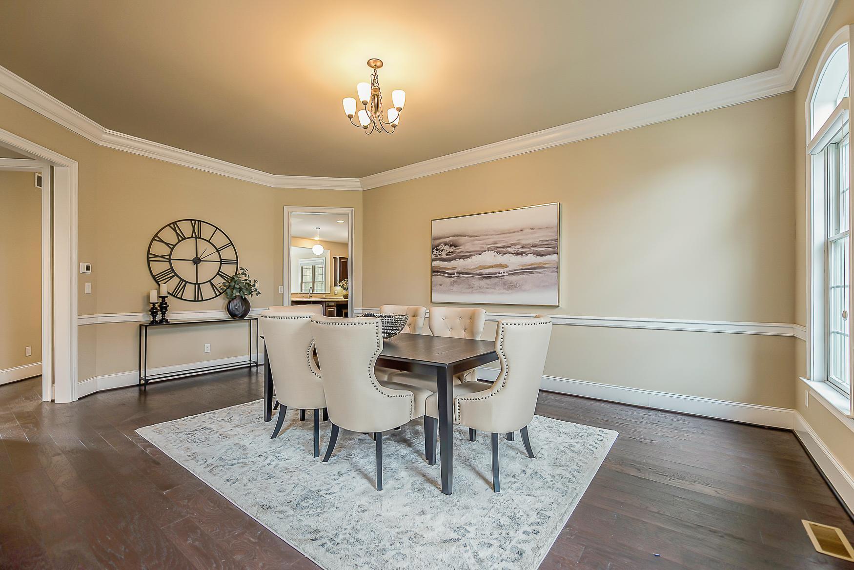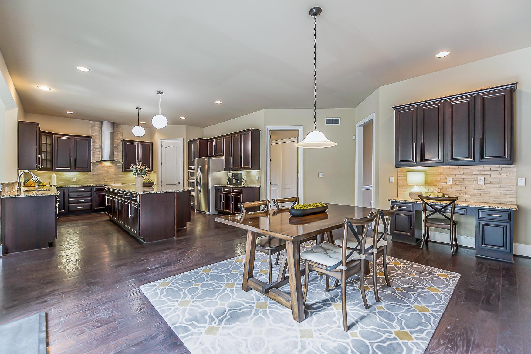 Designed for the ultimate host, the gourmet kitchen is a chef's dream. It features a large center island, granite countertops, rich cherry cabinets, a full suite of stainless-steel appliances, and a walk-in pantry. The adjoining eating area opens directly onto a spacious composite deck, complete with an automatic overhead canopy for perfect outdoor dining. Steps away, the sunroom invites relaxation with its vaulted ceilings and sun kissed glow. Host memorable dinners in the formal dining room, large enough for grand gatherings and elegantly appointed with crown and chair rail molding. A dedicated study with floor-to-ceiling built-in bookcases offers a quiet retreat for work or reading. Two half baths complete the expansive main level.