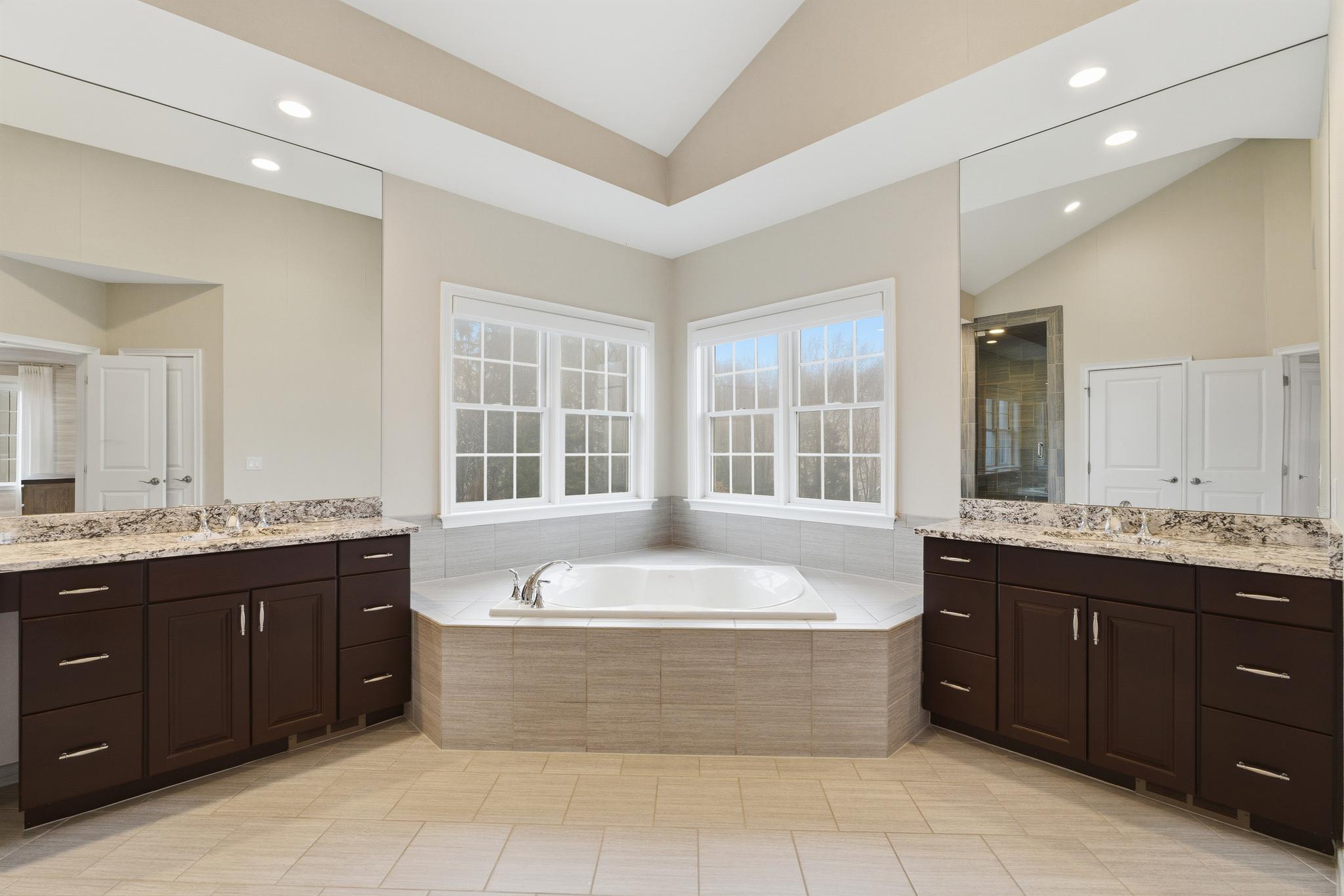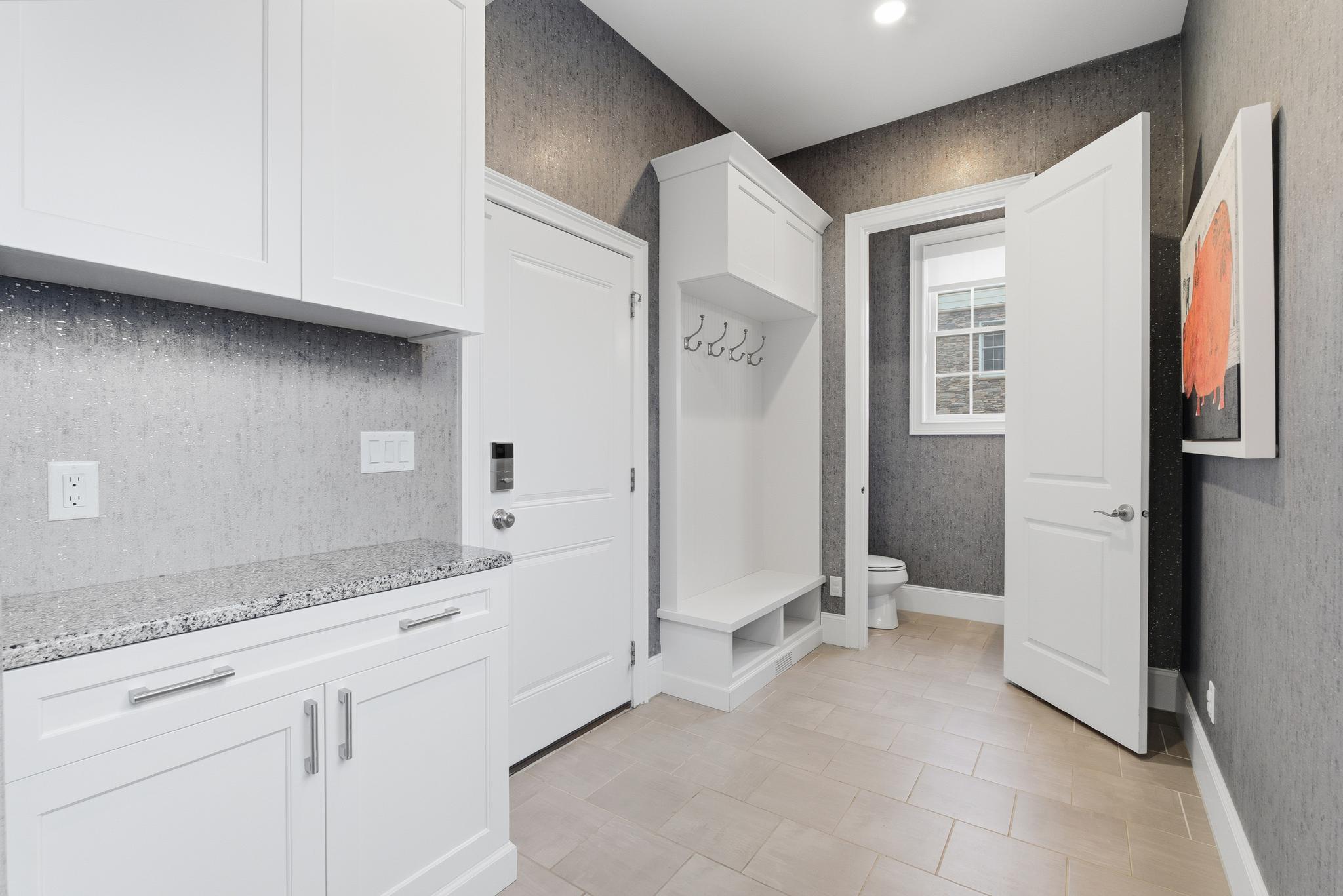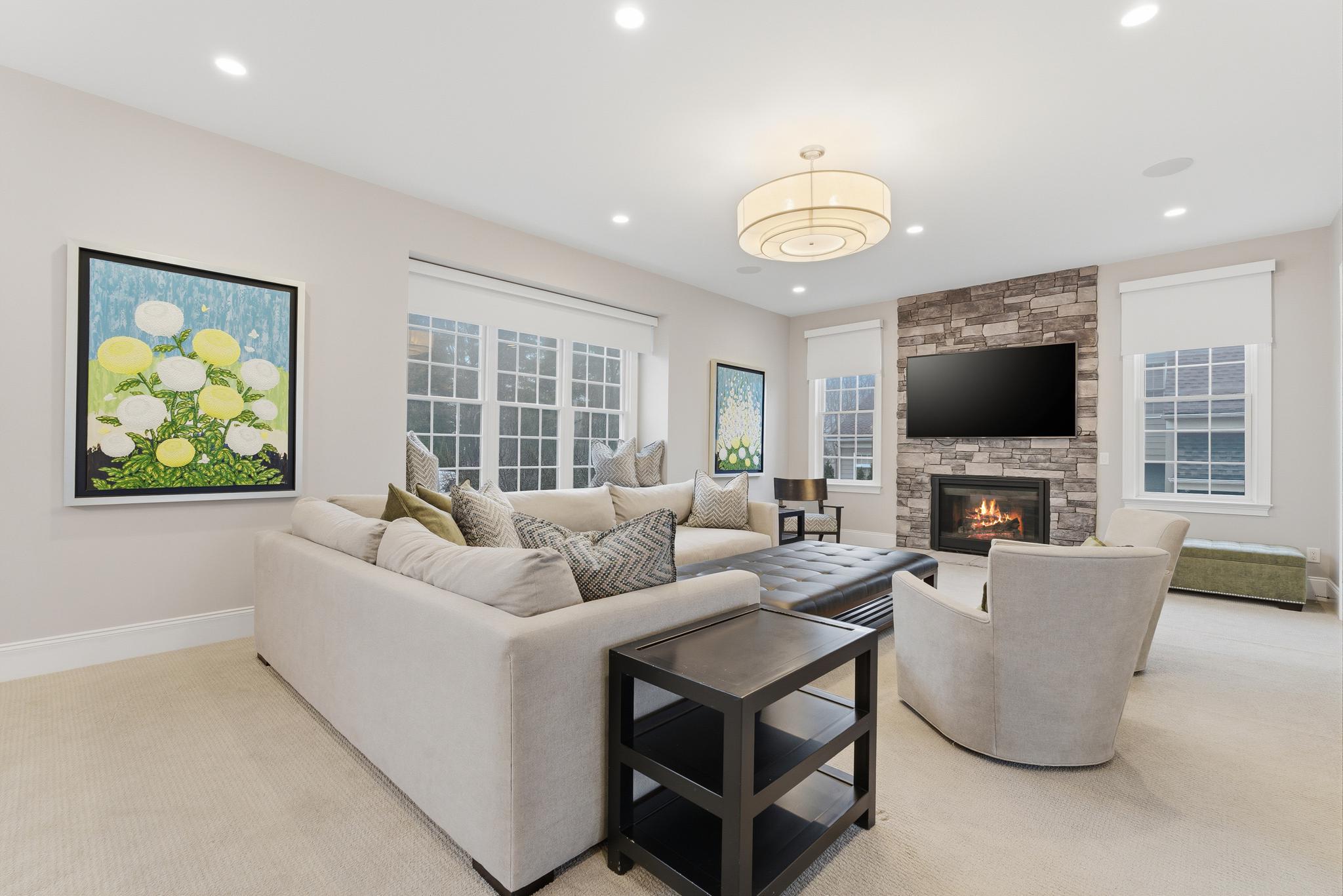 Upstairs, the luxurious primary suite offers a true sanctuary. Behind double doors, you will find dual walk-in closets with custom shelving, a private sitting room, and motorized shades. The spa-like en-suite bath features an oversized shower, a separate whirlpool tub, and double vanities with granite countertops. The second floor also includes two bedrooms connected by a Jack-and-Jill bath, a fourth en-suite bedroom, and a dedicated laundry room.