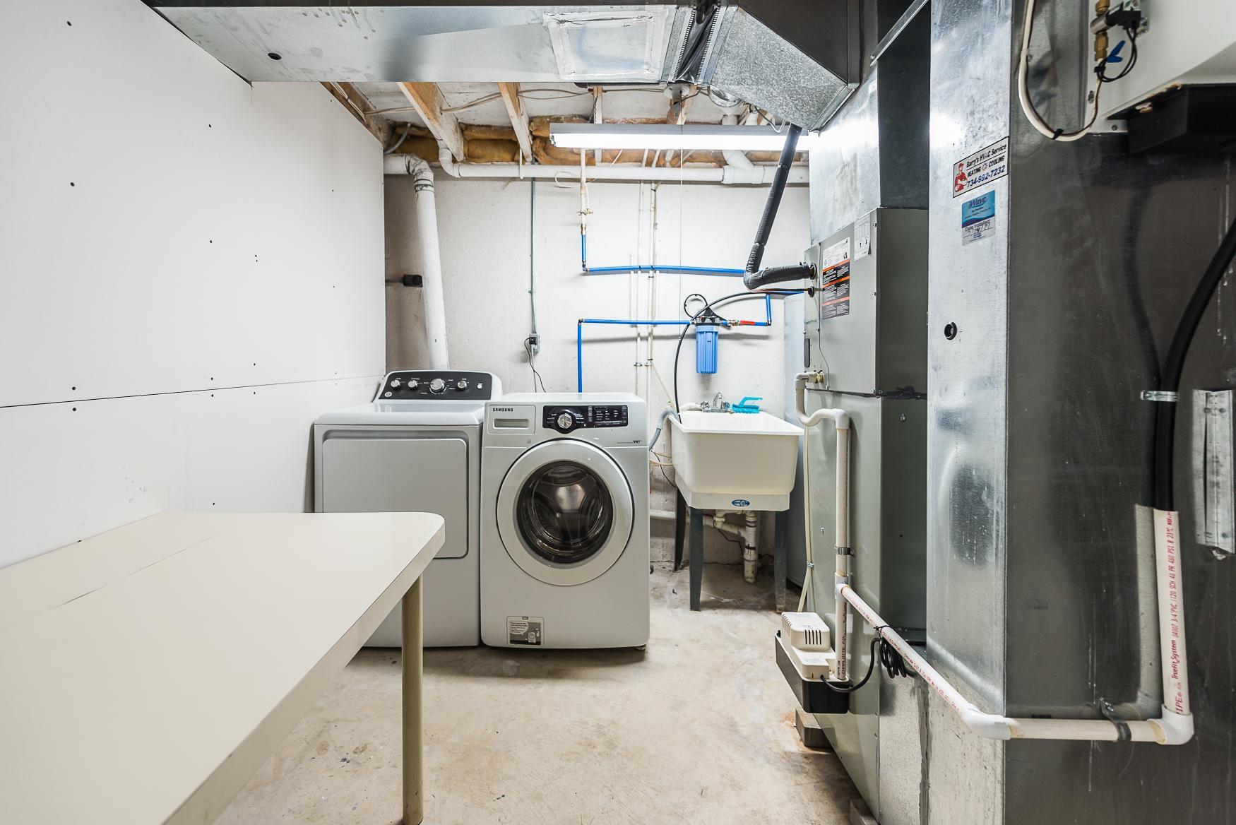 The second bedroom is generously sized with a large closet, and the beautifully remodeled full bathroom (2022) is conveniently located on the second floor. The partially finished basement, complete with drywall and epoxy floors, provides versatile space for storage, hobbies, or a home gym. Additional conveniences include an in-unit washer and dryer, a 1-car attached garage, and blackout blinds in the main bedroom for extra comfort. This home is ideally situated within walking distance to parks, shopping, and more. Plus, it's located on the Ann Arbor bus line, making commuting a breeze.