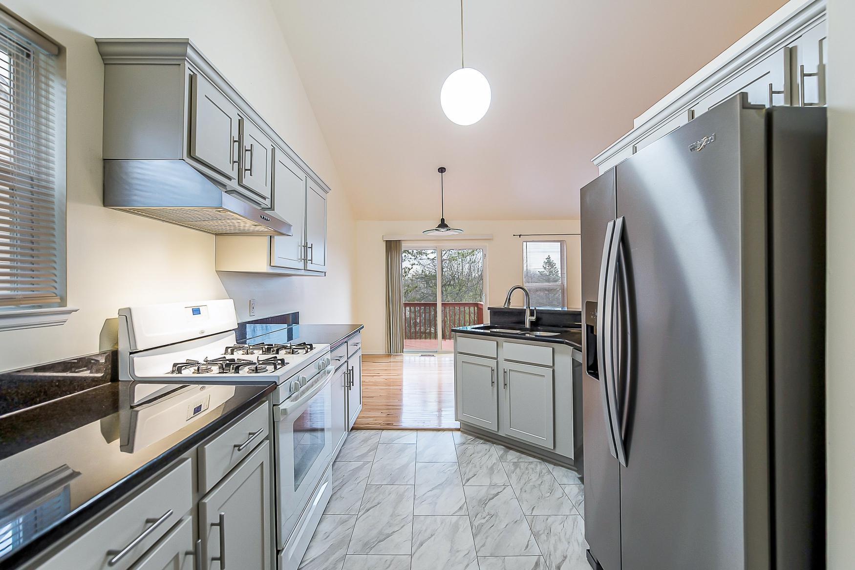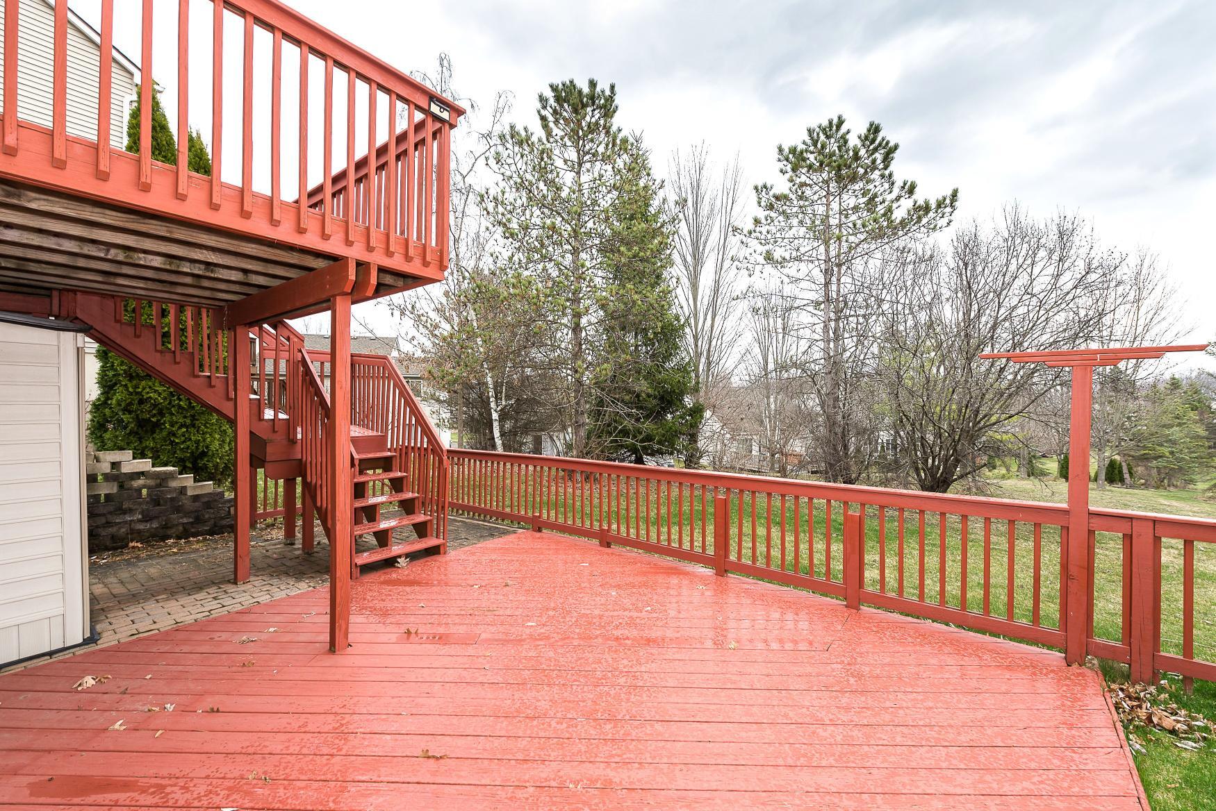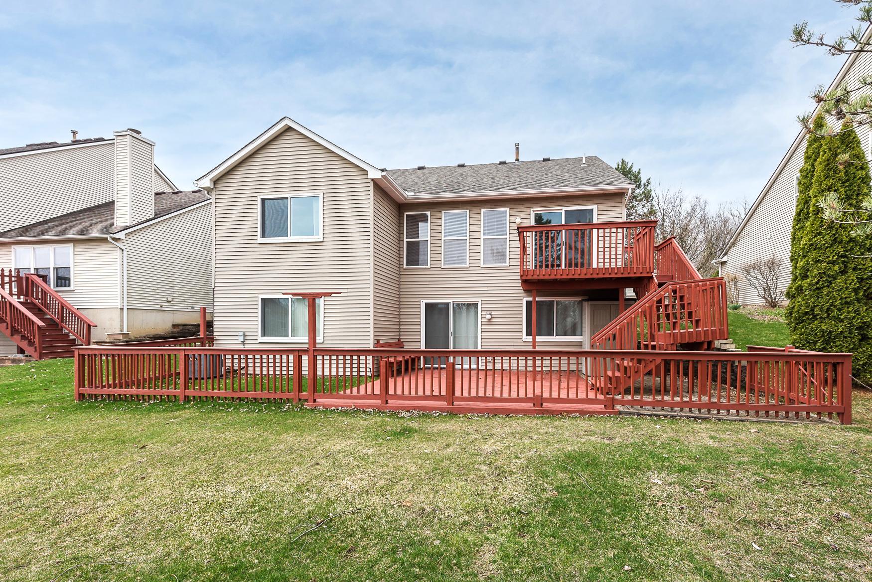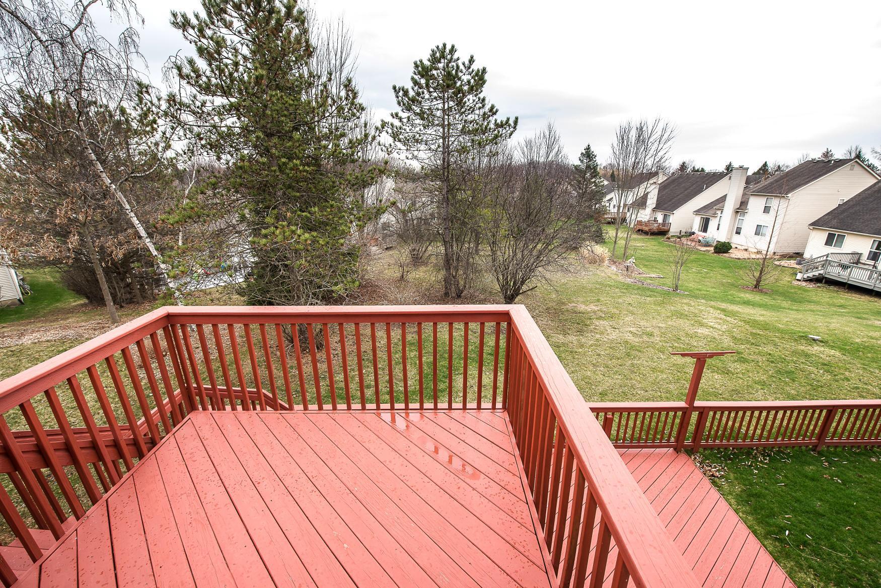 Step inside to find an inviting open floor plan highlighted by a vaulted ceiling that makes the main living area feel incredibly airy and expansive. Beautiful hardwood floors flow effortlessly throughout the main level. The living space opens directly onto a spacious two-tier deck, offering peaceful views of a fabulous backyard.