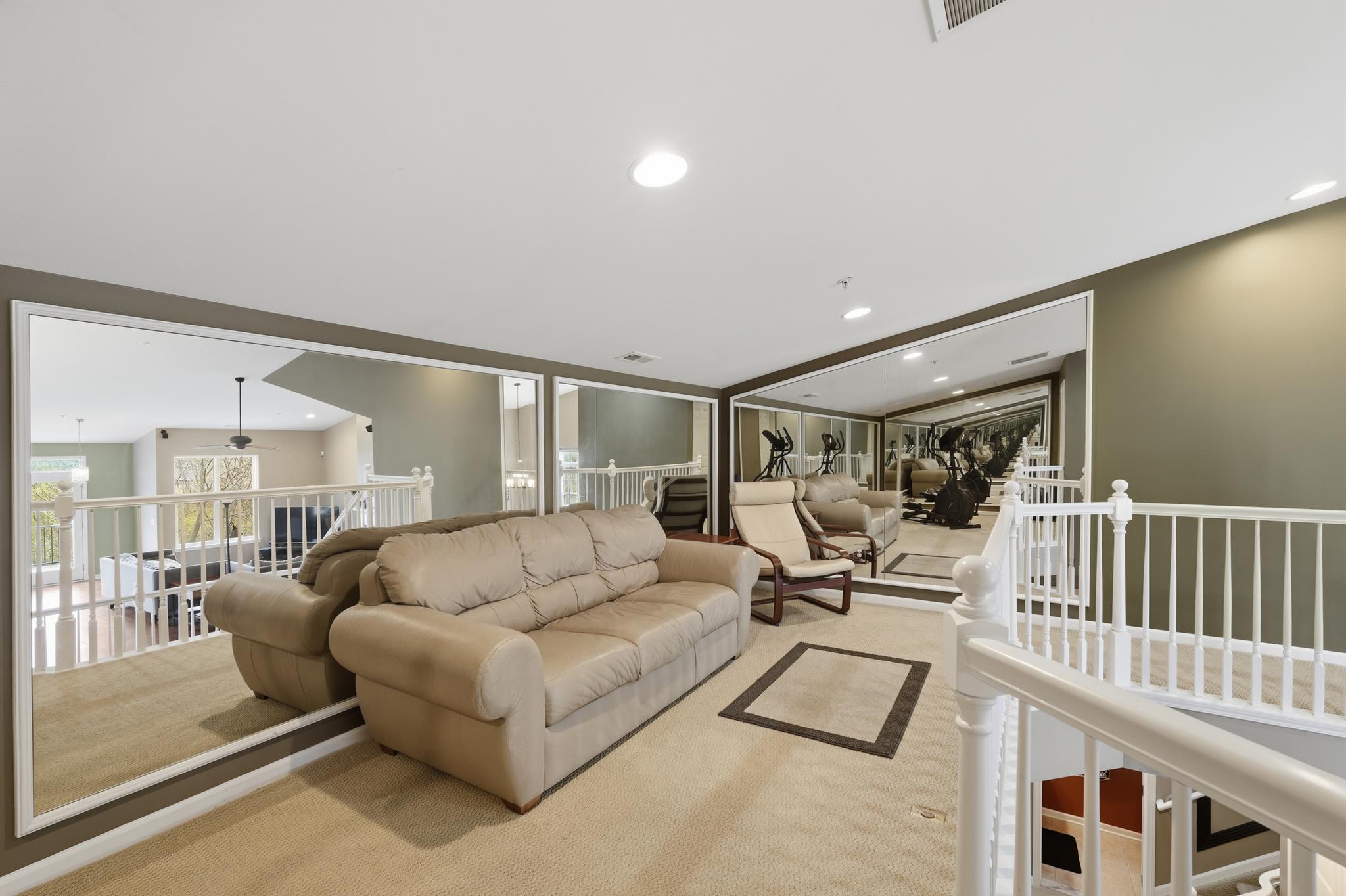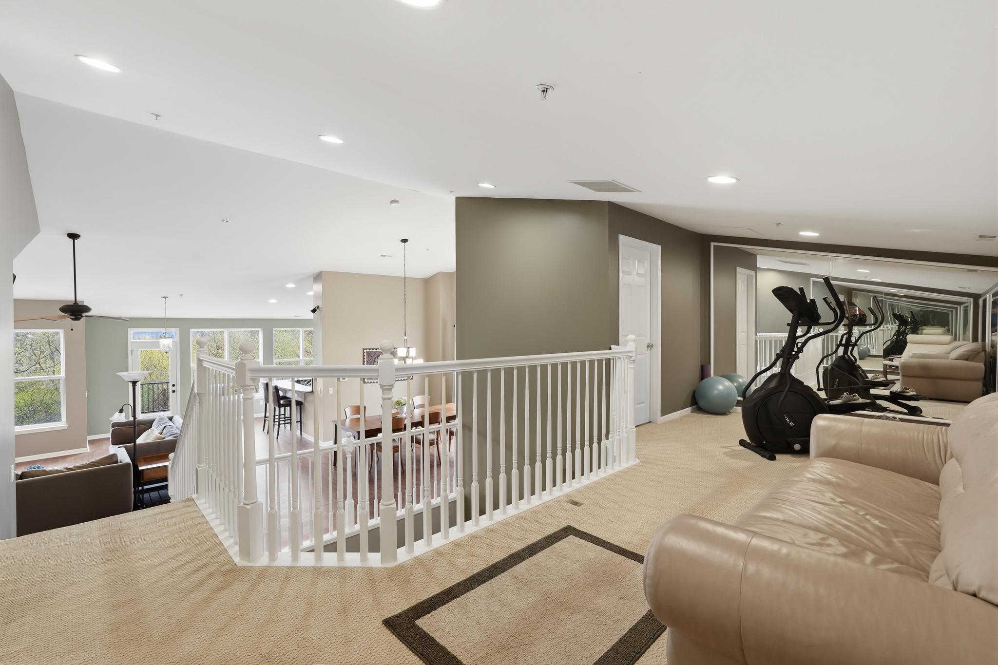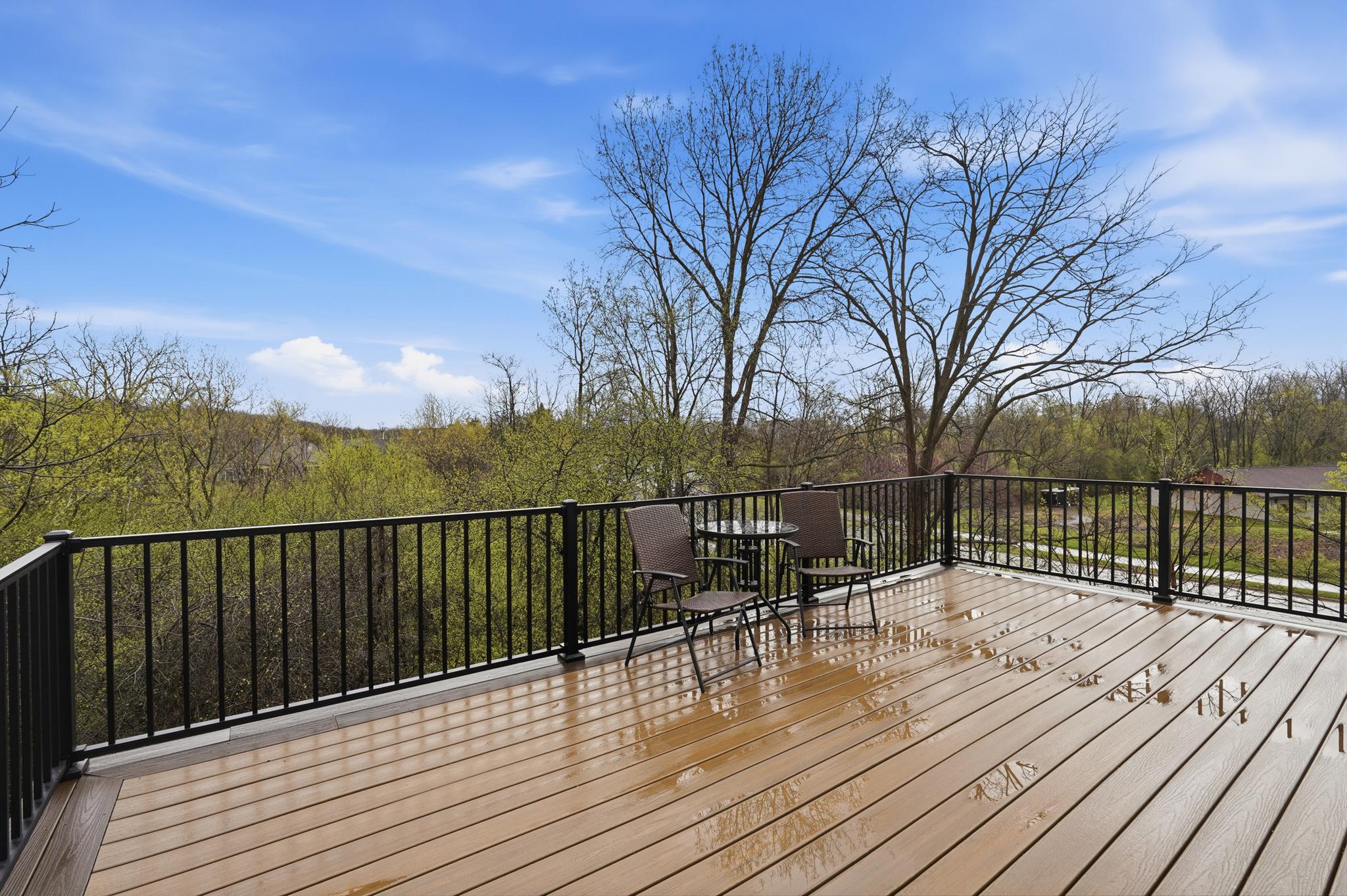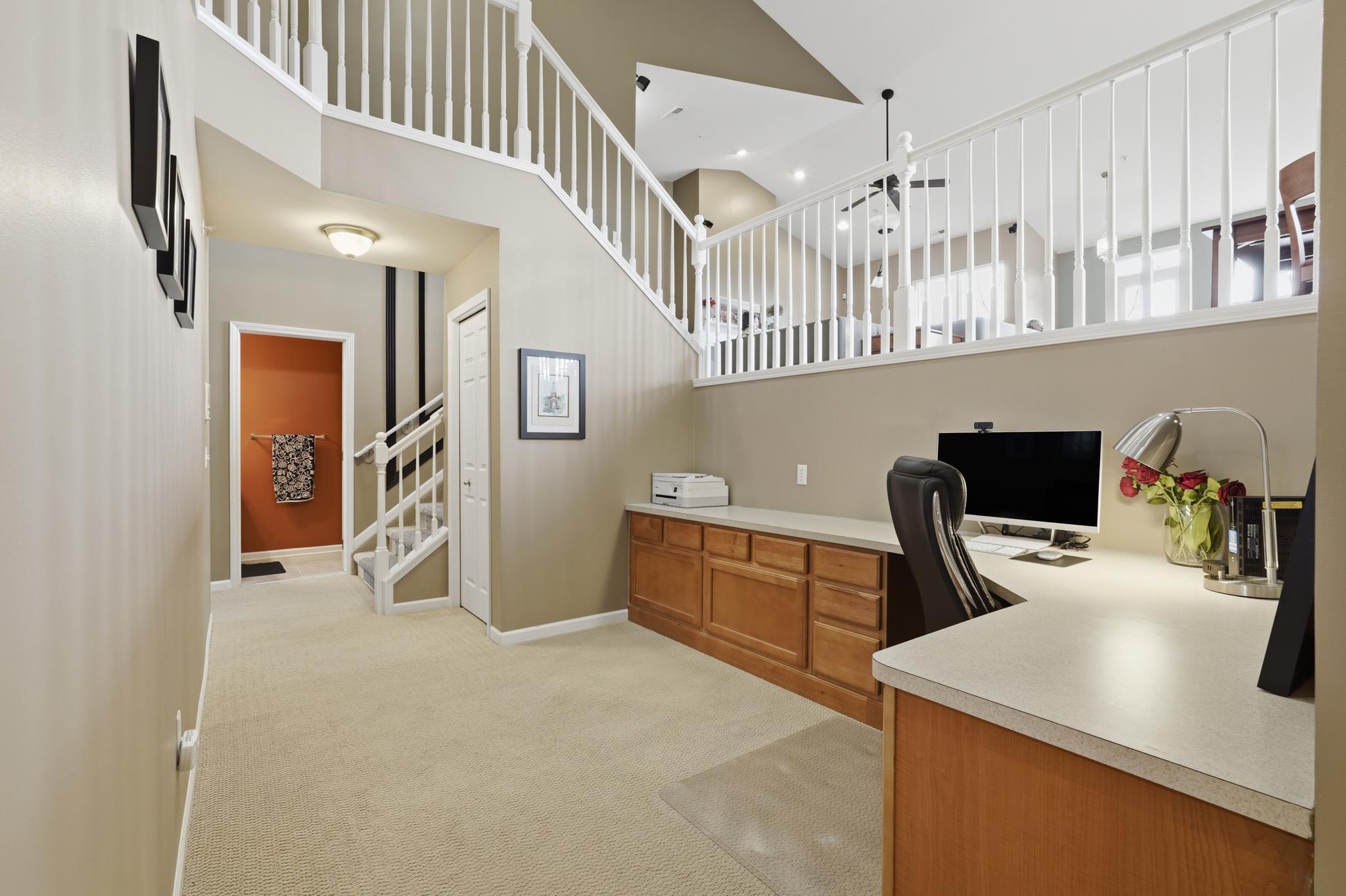 Spanning the second and third levels, the open layout boasts striking vaulted ceilings and oversized windows that fill the space with natural light. The spacious great room is anchored by a beautiful gas fireplace, making it an inviting spot for cozy evenings or entertaining guests. Flowing seamlessly from the living area, the kitchen offers maple cabinetry, ample storage, and a convenient breakfast bar that connects to the large formal dining area. Step out onto your newer Trex deck to dine al fresco while enjoying peaceful views of the surrounding woods and local wildlife. Above, a flexible loft space overlooks the the main living area, providing an ideal spot for a home gym, reading nook, or creative studio.