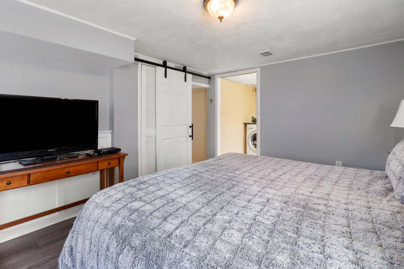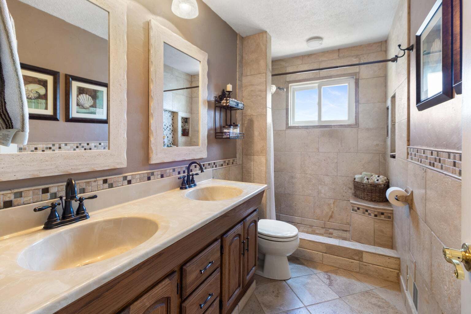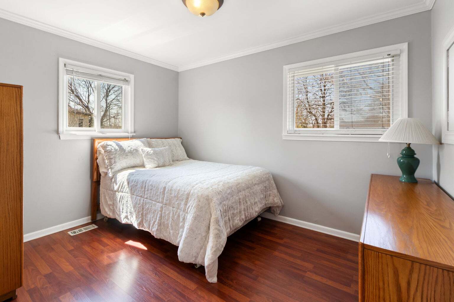 Welcome to this beautifully updated tri-level home tucked away in a quiet cul-de-sac. This thoughtfully designed home boasts three bedrooms and two full baths, with generous living spaces spread perfectly across multiple levels, offering plenty of space for work, play, and relaxation. Step inside to a bright and inviting living room that flows naturally into the rest of the home. Adjacent, a dedicated study features elegant glass bifold doors and a closet, giving you the perfect space for a home office or a potential extra bedroom. The spacious kitchen serves as the heart of the home, offering classic oak cabinets, ample storage and work room, and an eating area with a built-in serving bar. From the kitchen, you have a clear view into the cozy family room, which features luxury vinyl plank flooring and a beautiful tile-surround fireplace that creates an inviting focal point for relaxing or entertaining. The lower-level primary bedroom features stylish board and batten molding and is situated near a large laundry room and a full bathroom with gorgeous tile work and a walk-in shower. Upstairs, you'll find two additional bedrooms, one of which has its own private balcony. The shared upper bathroom is custom-tiled and includes a dual sink vanity and a spacious shower with a built-in seating bench.