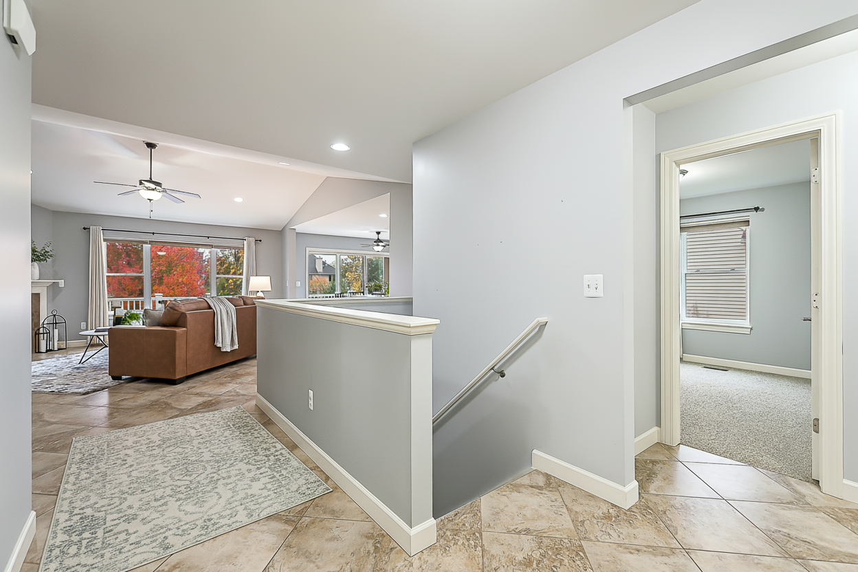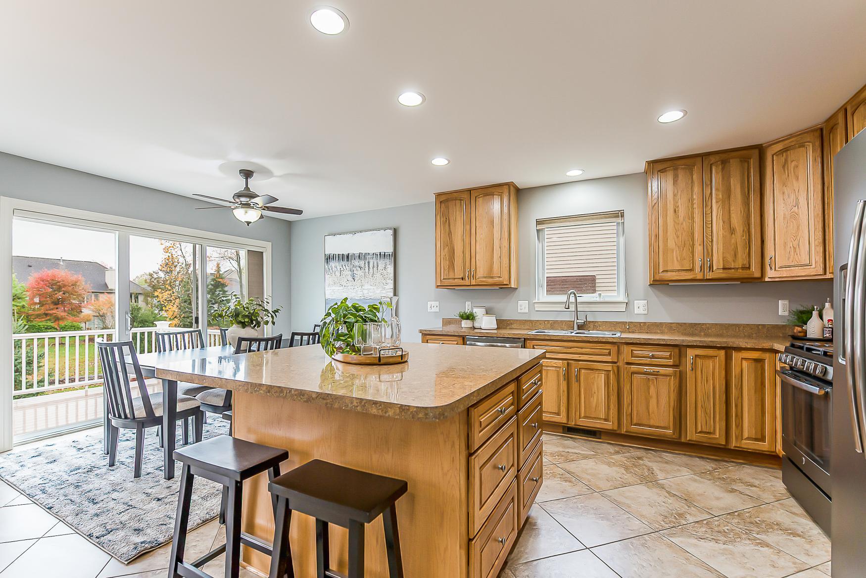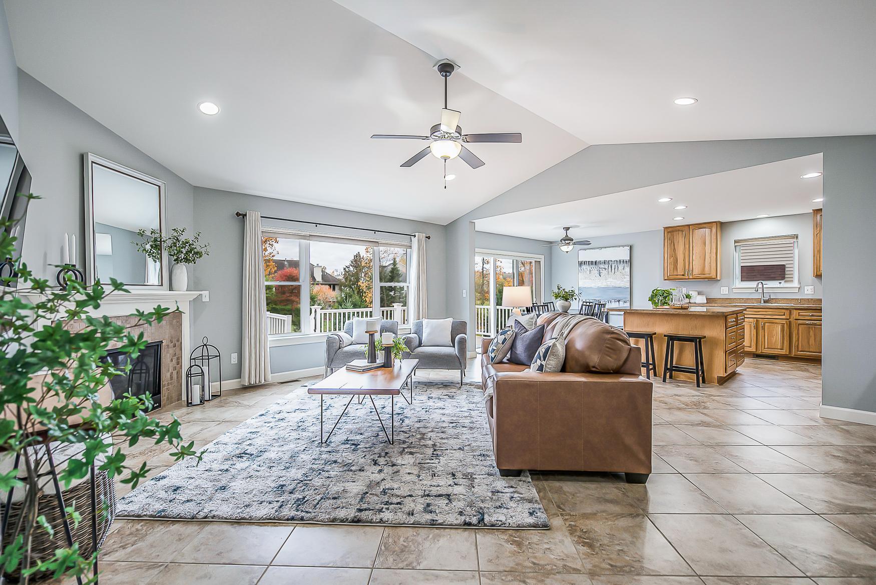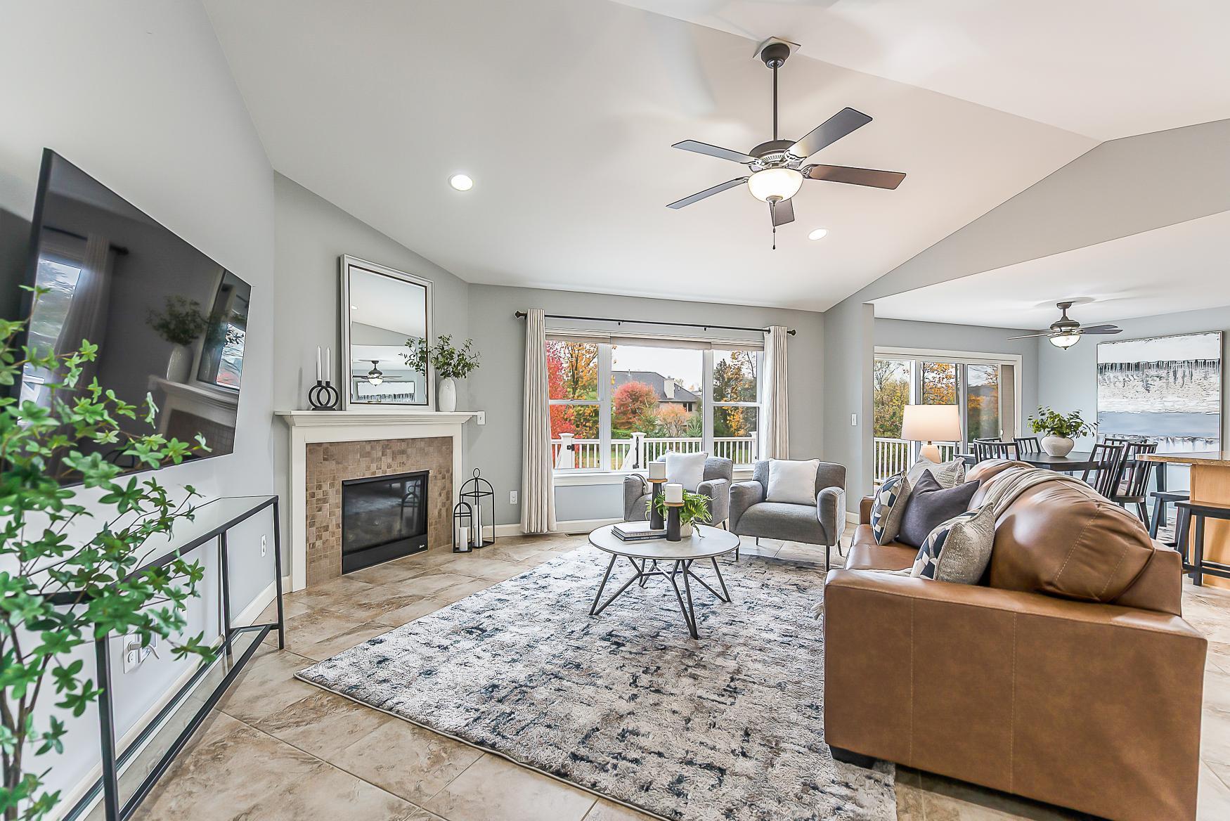 Experience comfort, style, and unrivaled convenience in this inviting 3-bedroom, 3-bath ranch with a finished walkout basement in the sought-after Dexter Crossing community. The airy open floor plan features a great room with soaring cathedral ceilings, a cozy gas fireplace, and abundant natural light from expansive south-facing windows. The chef's kitchen is equipped with deluxe hickory cabinets, a spacious granite island with seating, and stainless-steel appliances, making it ideal for both meal prep and entertaining. Step from the dining area onto the extensive Trex deck, perfect for relaxing or hosting gatherings, and enjoy the privacy of a fully fenced backyard - ideal for pets, play, or outdoor living. The main-floor primary suite offers a true retreat with a corner gas fireplace, dual closets (including a walk-in), and an elegant en-suite bathroom with dual sinks and ample counter space.