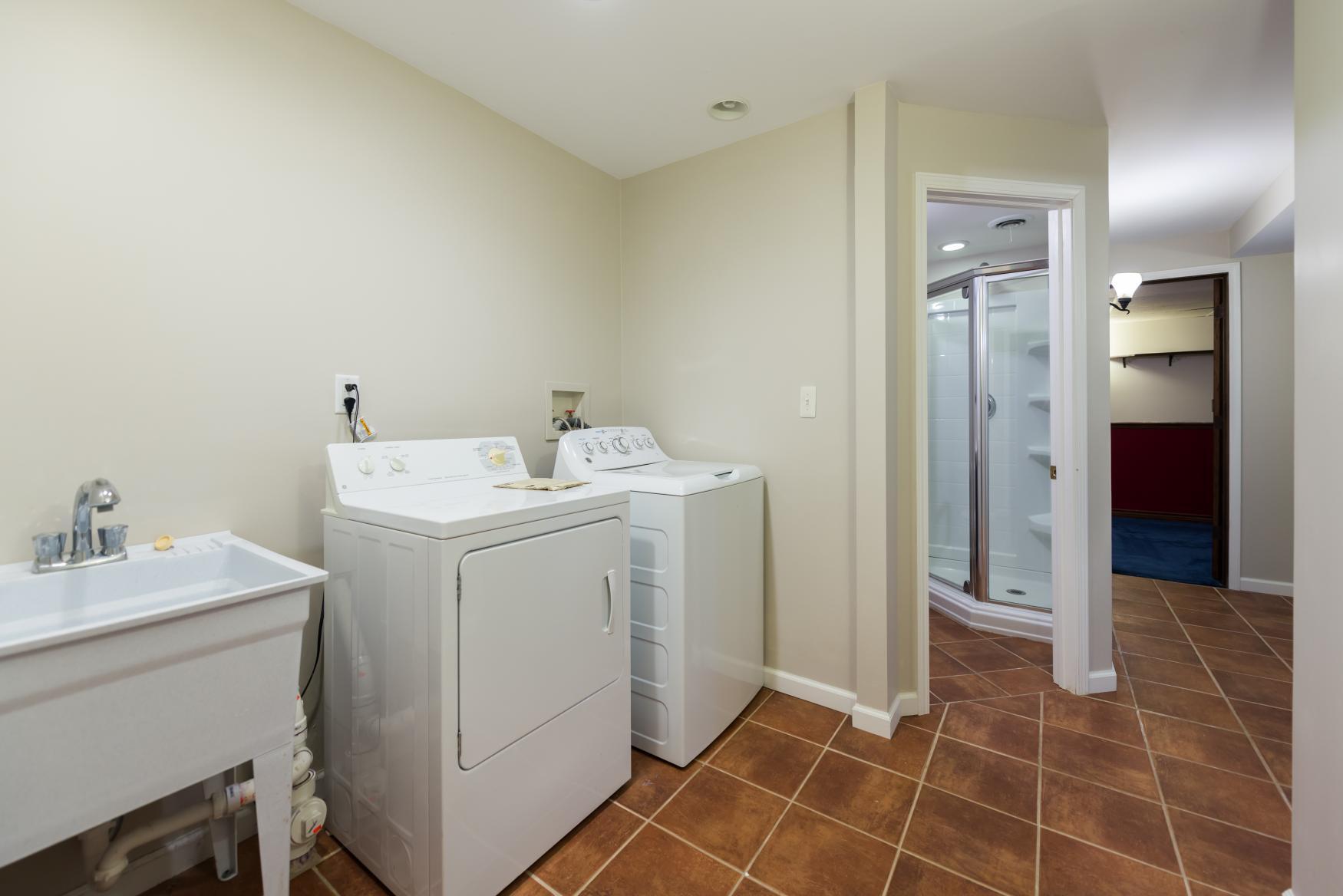 The finished daylight lower level provides even more living space, including a third bedroom with a walk-in closet, a full bath, a versatile recreation area, a laundry room with a utility sink, and ample storage.