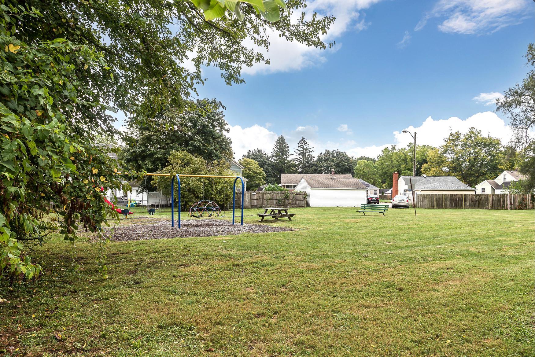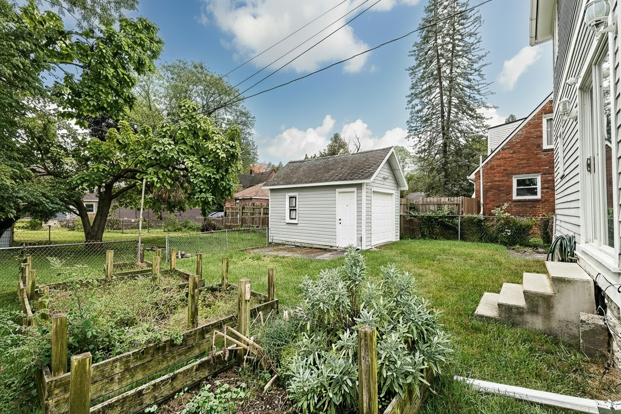 Outside, you’ll find a recently painted one-car detached garage, a fire pit, and three distinct yard spaces to enjoy. The garden features raised beds and trellises, perfect for growing your own produce or flowers. The front porch is a standout feature, with drop-down blinds for privacy and a ceiling fan to keep it cool in the summer while helping to keep bugs at bay. A Little Free Library in the front yard adds a welcoming touch and fosters a sense of community. Additionally, a neighborhood tot lot is located directly behind the house, offering a convenient and fun play area for children.
