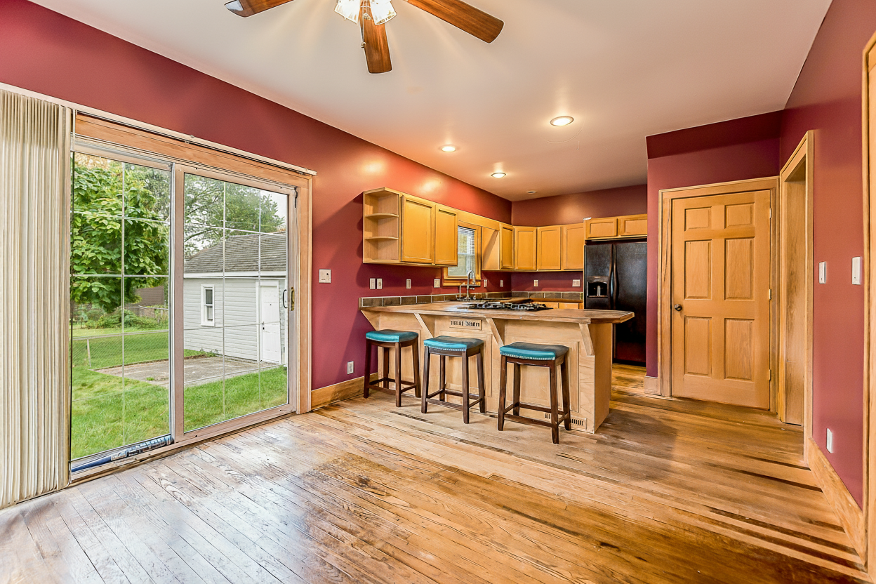 With 3 bedrooms and 1.5 baths, it’s full of character and ready for its next chapter. The original oak trim on the main floor has been carefully restored to its natural beauty, and the kitchen cabinets have been left unfinished, giving you the opportunity to customize them to your style. The kitchen and dining room have been opened up into a spacious great room, ideal for today’s lifestyle. A convenient half bath is located on the main floor, while the three upstairs bedrooms share a full bath. Most of the interior has been freshly painted, providing an immediate refresh and saving you time and effort.
