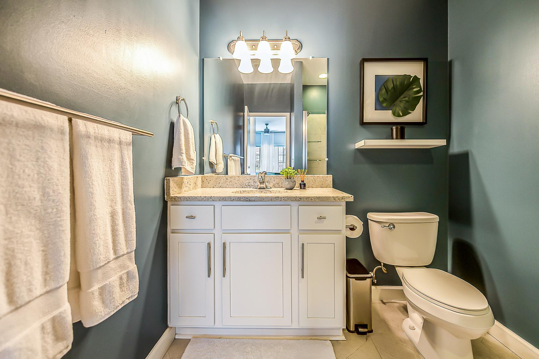 The primary bedroom is a serene retreat, offering a walk-in closet and an ensuite bath with a tiled shower and granite-topped vanity. A spacious second bedroom and a full guest bathroom with a shower/tub combo and oversized granite vanity provide ample space for family or guests.