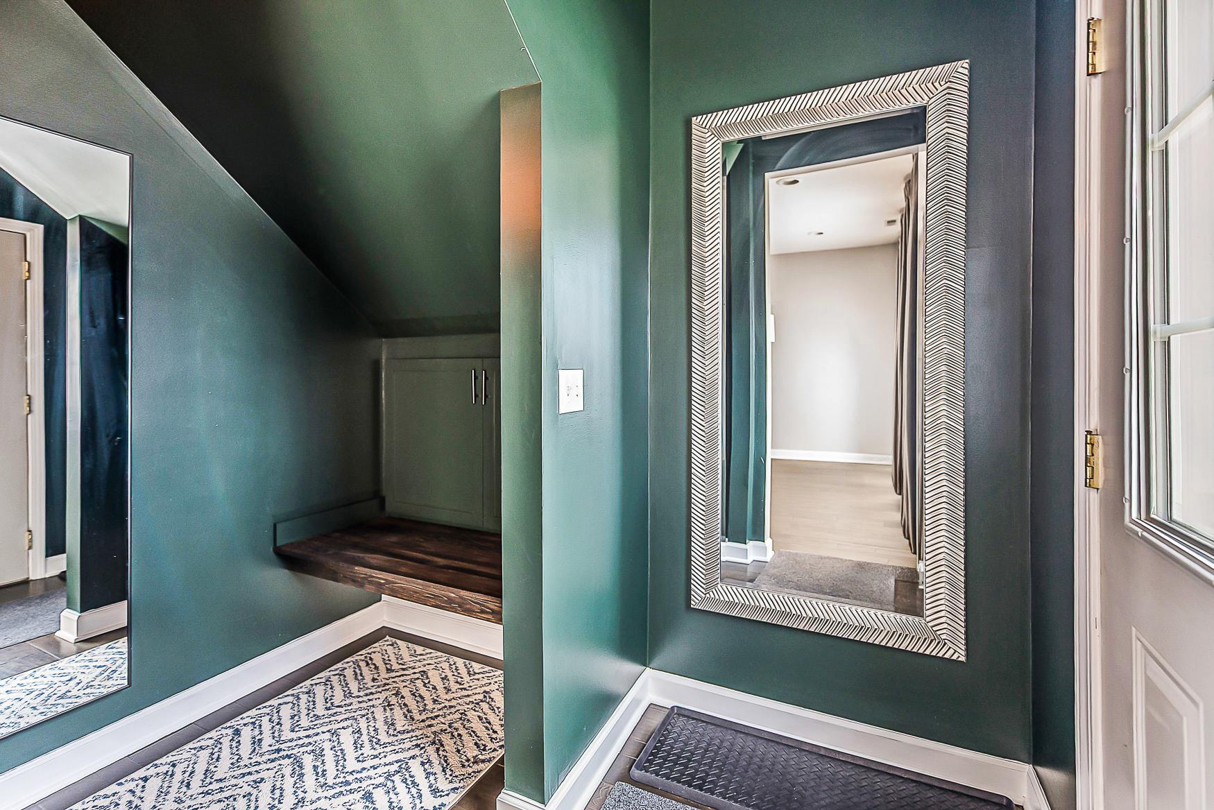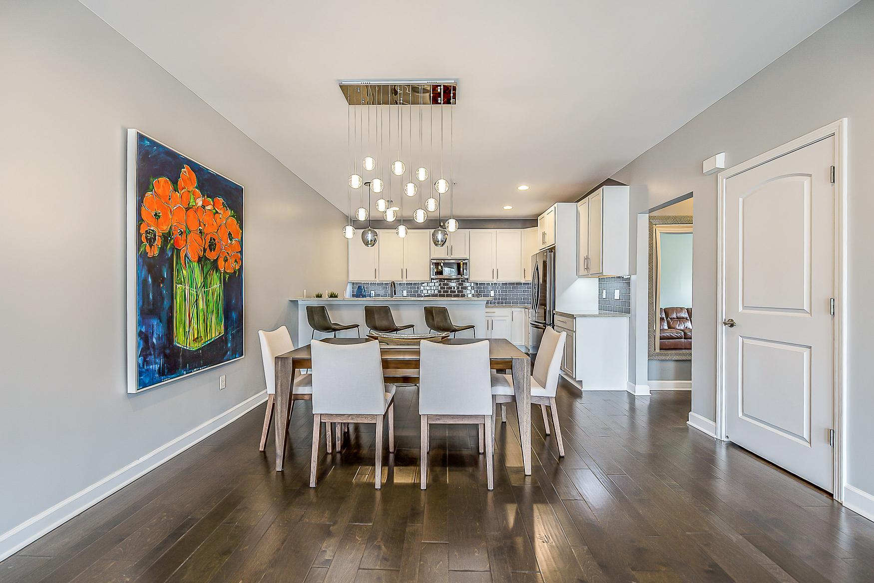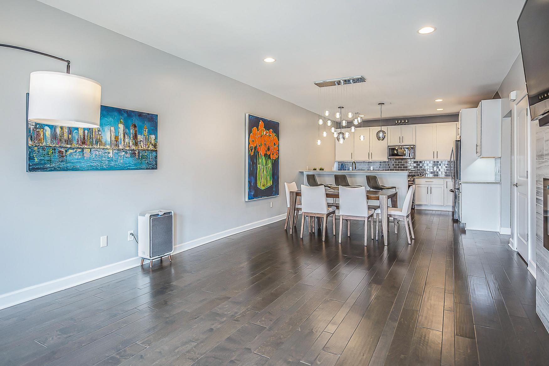 Step inside to find handscraped variable-width custom hardwood floors gracing the foyer, half bath, kitchen, and dining room. The living room is anchored by a breathtaking floor-to-ceiling tiled fireplace with an electric insert, creating a cozy and elegant focal point. The gourmet kitchen is a chef’s dream, complete with 42” cabinets, recessed lighting, granite countertops, a snack bar, and stainless-steel appliances.