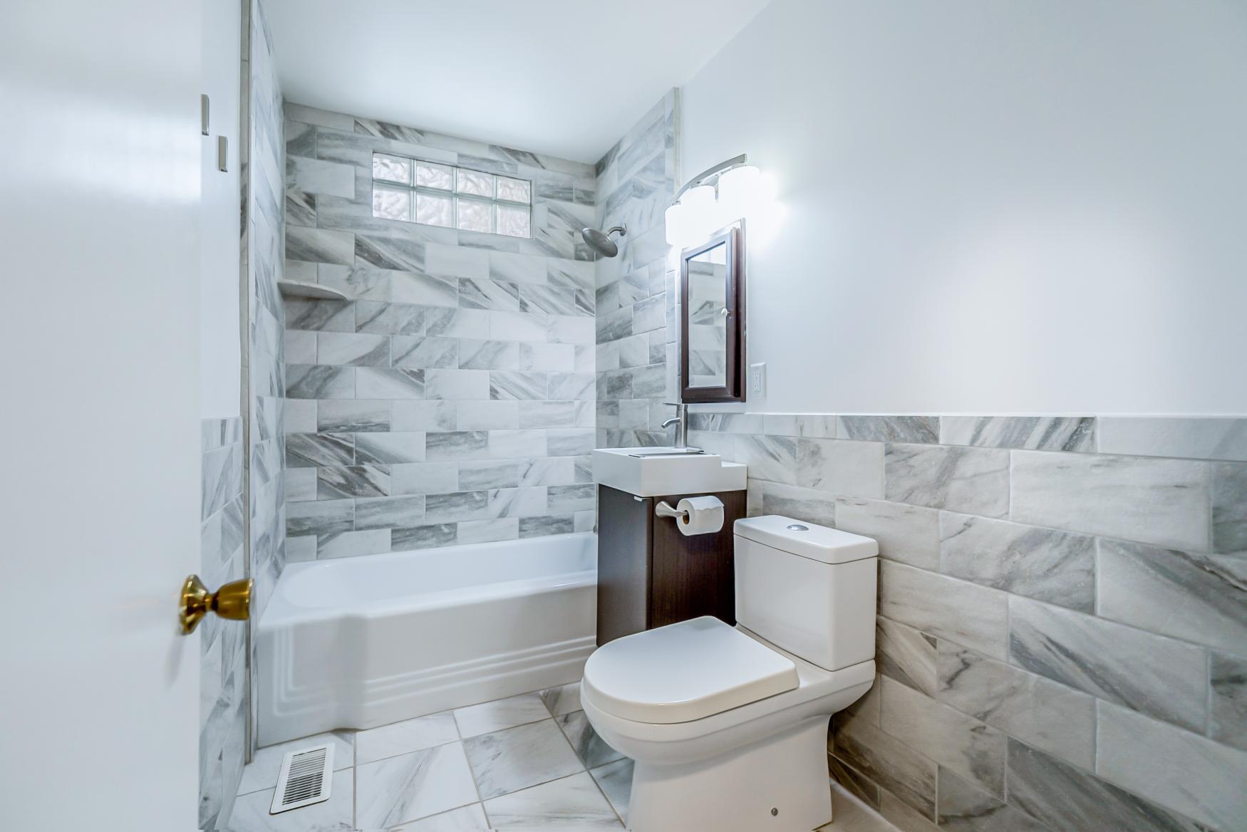The two bedrooms offer comfortable, versatile spaces that can easily adapt to your needs, while the bathroom has been thoughtfully updated with contemporary tile, neutral tones, and glass block accents.
